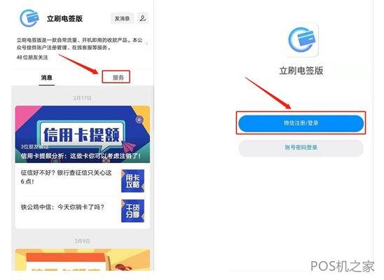 1、关注“立刷电签版”公众号                        2、打开“立刷电签版”,点击微信注册/登录