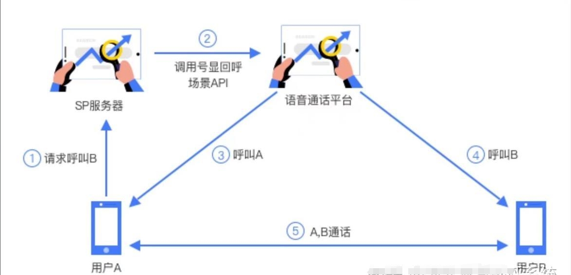 也叫双向回拨线路,回拨线路是使用了透传技术, 以三方呼叫的模式。当业务员在系统里点击拨号时,运营商会分配一 个中间号进行三方呼叫,中间号会先给业务员打电话,业务员接听后 会自动转给客户,客户接听,从而实现双方通话,并且客户那边看到 的来电是业务员自己真实的号码,如下图: