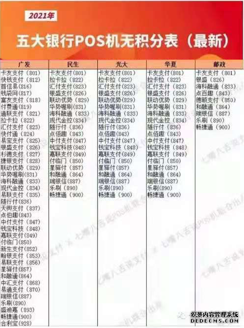 信Y卡积分是银行鼓励消费,提成信用等级等作用,以前刷信Y卡积分可以达到95%,现在由于银行规则调整,导致很多pos机刷信Y卡没有积分,今天为大家介绍下比较特殊的几家银行,分别是华夏银行,邮储银行,民生银行,广发银行,中国光大银行