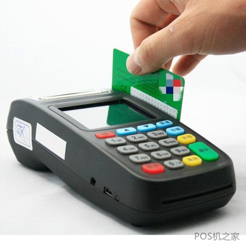 刷卡为磁条卡,插卡为芯片卡,pos机是刷卡机,有一个刷卡槽,将有磁条的一面直接刷卡就可以。
